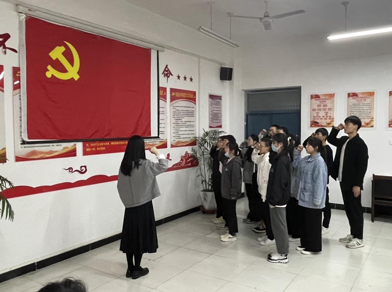 yl6776永利集团党总支书记王虹宣读组织决议。学生党支部组织委员巴瑞带领新入党学生及转正学生面向党旗庄严宣誓。