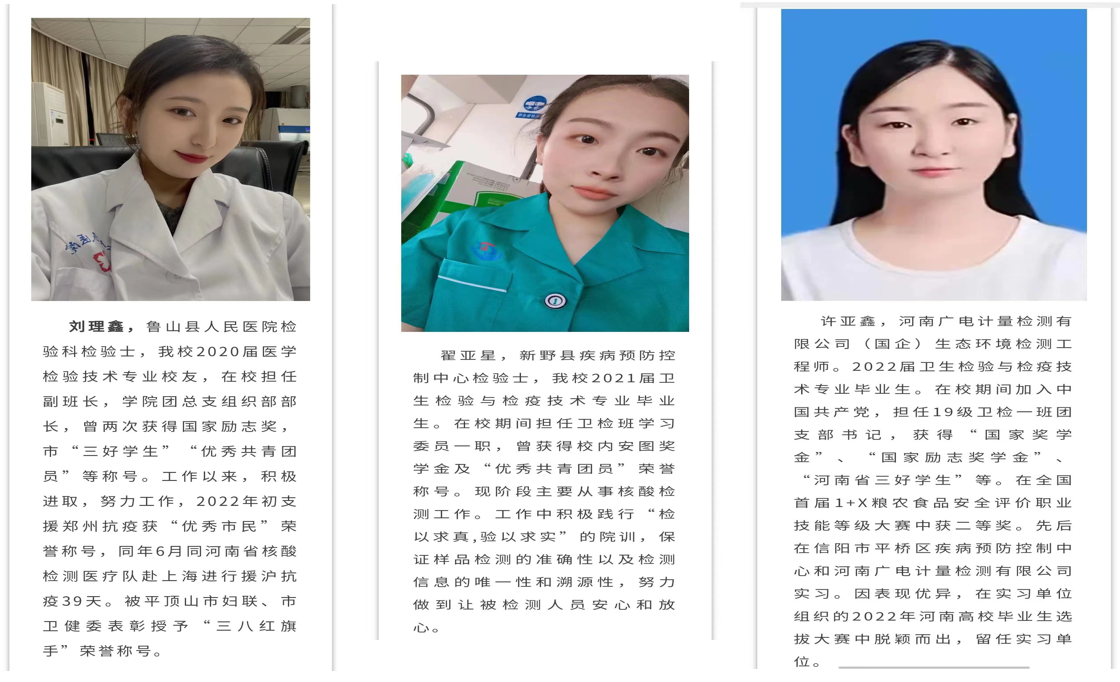 【专业优势与特色】医学检验技术专业开设于1972年,是我省最早开办此专业的学校,至今已有50年的办学历史,为河南省医学检验事业做出卓越贡献。在全体师生的共同努力下,先后被确定为省高职高专教学改革试点专业、省高等学校特色专业建设点、省高校教学团队、省示范性高职院校重点建设专业、省骨干建设专业;《微生物学检验》、《免疫学检验》和《生物化学检验技术》分别被认定为国家级精品课程、省级精品课程、省级资源共享课程和省级精品在线开放课程;2021年被立项为河南省职业教育专业教学资源库建设项目。