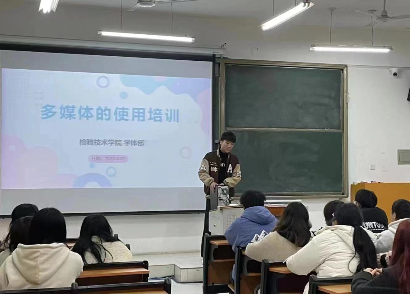为了改善我院教室多媒体因设备陈旧频频出故障的情况,保证正常教学秩序和同学们的日常学习活动,3月22日晚上7点,yl6776永利集团学体部特邀21级检验2班班长刘永康同学,对各班学习委员进行多媒体日常使用和维护的相关培训。