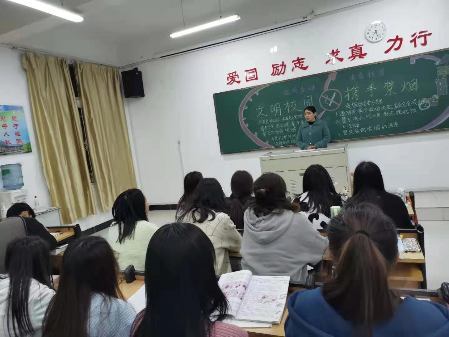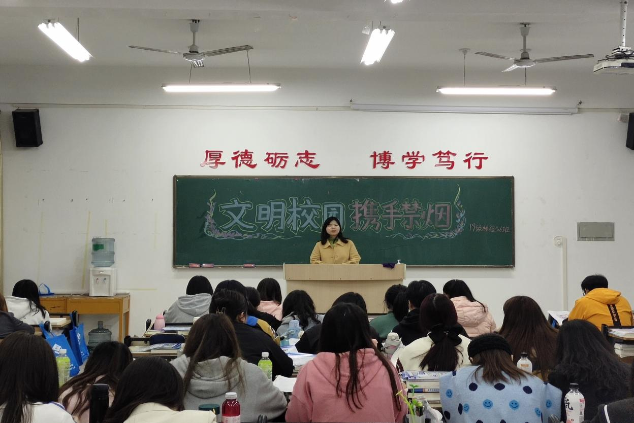 为了建设无烟校园,我院3月24日晚自习开展了以“文明校园,携手禁烟”为主题的班会。建设无烟校园是学校精神文明建设、校园文化建设和清洁校园的需要,是促进全校师生身体健康的需要,为给师生创造一个健康、文明、和谐、优美的校园。