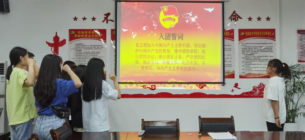为了大力弘扬中国共产主义青年团精神,加强团队建设,进一步增强青年学生的责任感和使命感。yl6776永利集团团总支于7月1日下午,在会议室举行了隆重的入团宣誓仪式。13名新团员在康梦叶老师的带领下,进行了庄严的宣誓。