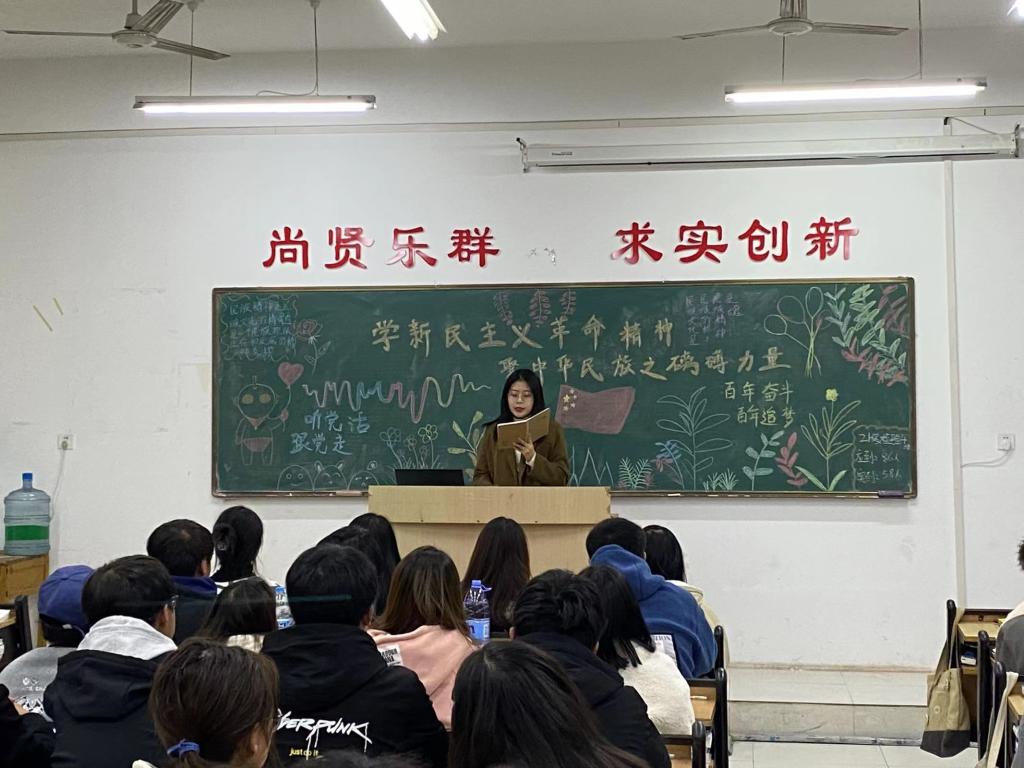 首先,由团支部书记带领大家回忆并简述中国共产党百年不断奋斗的光辉历程。新民主主义革命时期历史是中国共产党诞生到建立新中国的历史,是我们党一步步由小到大、由弱到强、不断从胜利走向更大胜利的创业史、奋进史,是我们党带领中国人民推翻“三座大山”、实现民族独立和人民解放的斗争史,是中国共产党的领导不断走向成熟的实践史。