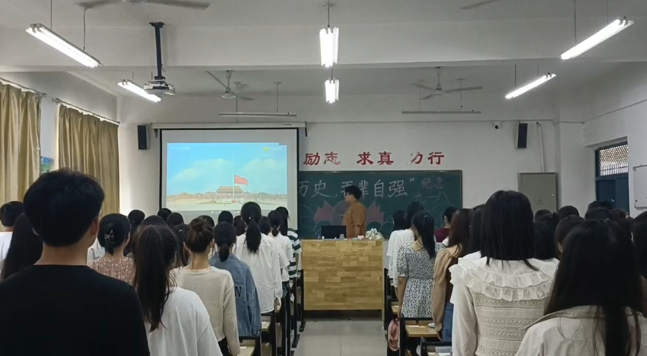各团支部主题团日活动在雄壮的国歌声拉开了序幕,盛世如今说往事,青山巍巍祭忠魂!各团支部回顾了“九一八”事变和抗日战争时期的苦难岁月,并集体默哀一分钟悼念所有在抗日战争中牺牲的先烈和同胞,全体团员面对团旗齐唱团歌,重温入团誓词,围绕“铭记历史 吾辈自强”主题,同学们积极发言并分享了学习后的收获和体会。