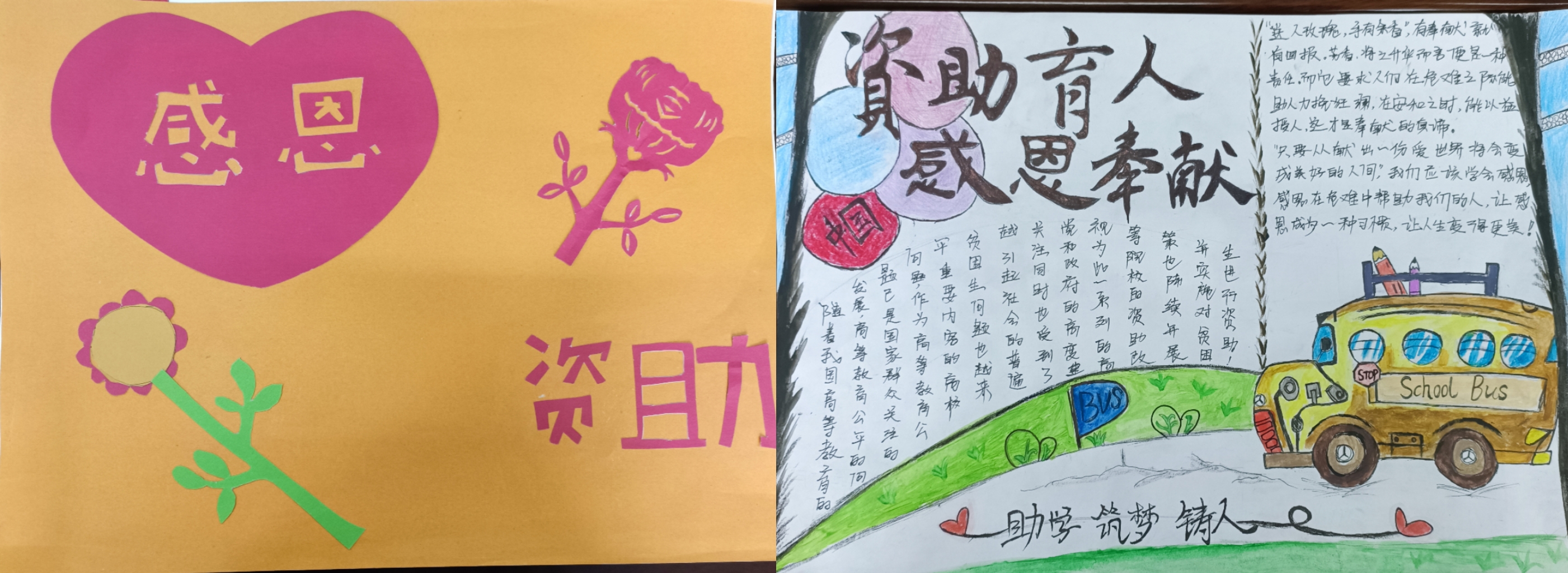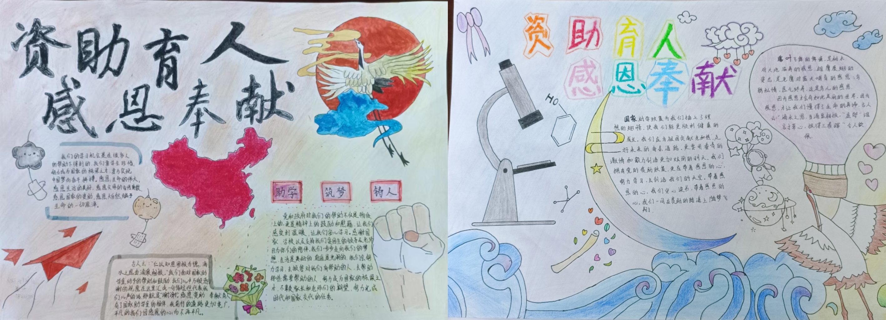 本次活动要求以初心励志、感恩奉献、崇德向善、资助育人等主题,通过剪贴画手抄报的形式表达自己对学校与国家的感恩,学生能够“贴”出心中所想,“绘”出爱的形状,以自己的巧思构想,道出爱与奉献是人类生活的永恒主题。