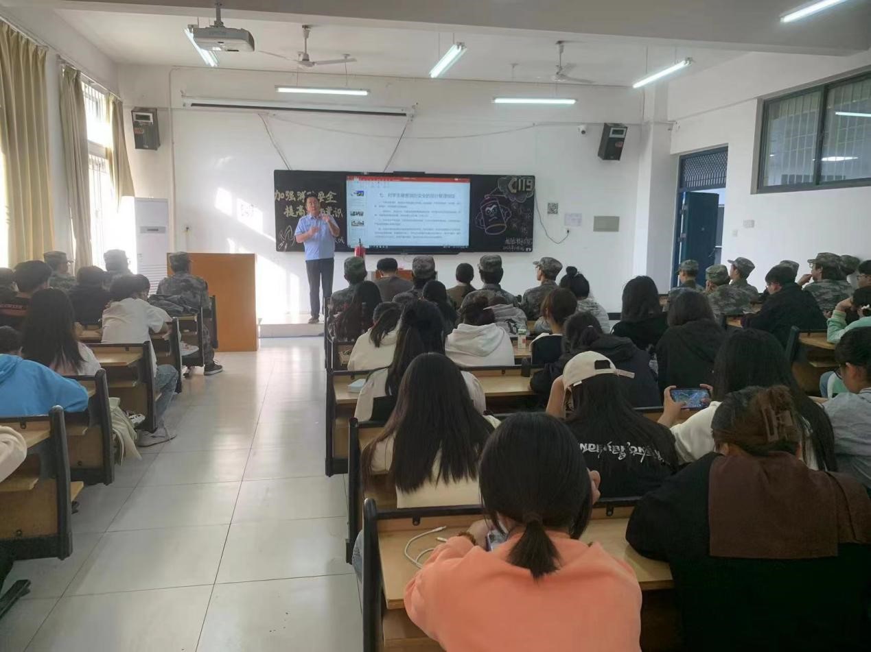 吴科长首先进行消防安全知识培训,详细讲解了校园、宿舍着火的事例,通过这些事例普及消防安全知识以及安全逃生的基本技能以及面对突发火灾时如何应对的措施和方法。