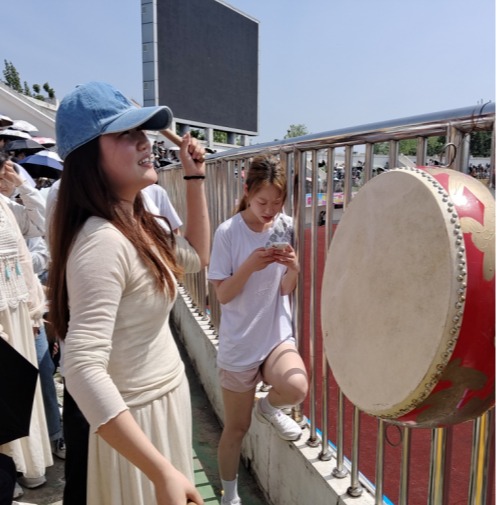 烈日炎炎下,同学们热情高涨奋力呐喊助威,更像是一场赛场外的较量。场下在志愿者服务运动员健儿的同时,班级也为欢呼雀跃的同学们撑伞遮阳,分发雪糕、水等来补充能量防止中暑;观众席上检验学子们观看比赛自觉保持班级、卫生秩序,各个班级的朝气蓬勃不仅展现了检验学院团结一致的美好品格,还有昂扬向上的精神面貌。