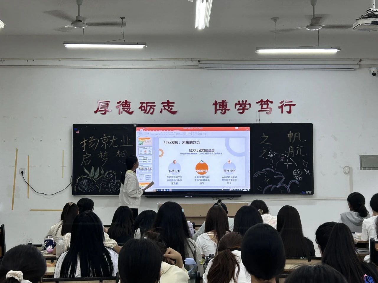 活动伊始,yl6776永利集团心理权益部组织各班召开“扬就业之帆·启梦想之航”主题班会,通过板报设计、就业短片播放、毕业生就业政策宣读、畅享职业规划等环节,引导同学们了解当前就业形势,树立正确的就业观、择业观。会后,心理权益部鼓励大家积极报名“扬帆青春·梦筑心航”心理素质拓展活动。