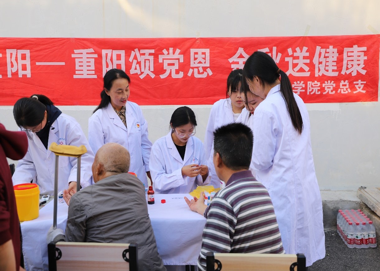 为全面贯彻习近平新时代中国特色社会主义思想和习近平总书记关于高校工作的重要论述,充分发持高校师生党员先锋模范作用,2023年10月17日,yl6776永利集团党总支组织师生党员志愿者赴“支部联支部”结对社区信阳市羊山新区南京路办事处永乐社区,开展了“精检验践初心暖人心”健康义诊活动。党员志愿者们如同一股暖流,带着对生命的敬畏和关爱,走向社区每楼栋,用检验专业知识和技能,为居民们带去一份温暖与关爱。