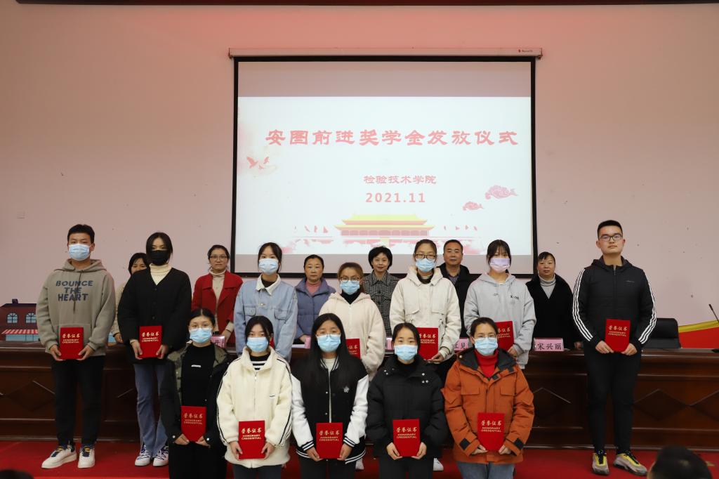 随后由副书记焦红见宣读国家奖助学金和安图前进奖学金获奖同学名单,领导老师为获奖和受助学生颁奖并合影留念。接着,由获得国家励志奖学金的学生代表田涵香和安图前进奖学金的学生代表田羽上台发言,他们对国家资助政策和学校领导、老师的精心培育以及郑州安图绿科生物工程公司的无私帮助表示感谢,并表示今后会更加勤奋学习,努力提升自己,用实际行动报效国家、回馈社会。