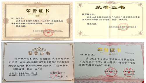 医学检验技术专业开设于1972年,是我省最早开办此专业的学校,至今已有51年的办学历史,为河南省医学检验事业做出卓越贡献。在全体师生的共同努力下,先后被确定为省高职高专教学改革试点专业、省高等学校特色专业建设点、省高校教学团队、省示范性高职院校重点建设专业、省骨干建设专业;专业核心课程《生物化学检验技术》被认定为国家级精品在线开放建设课程,《微生物学检验》、《免疫学检验》和《血液学检验技术》被认定为省级精品在线开放建设课程,《免疫学检验》和《血液学检验技术》被认定为省级课程思政示范课程;在教育部人才培养水平评估中作为重点剖析专业,取得了综合专业建设水平”优秀”;2017年微免教研室被评为省级基层优秀教学组织;2018年获批信阳市老年医学研究检测重点实验室;2020年获河南省教育厅“省职业院校医学检验技术专业陶玲‘双师型’名师工作室”;参与完成教育部国家级教学和实习标准的研制项目3项,参与完成国家高等职业教育医学检验技术专业教学资源库建设;在全国卫生职业院校检验技能竞赛中,连续六届获团体一、二等奖和个人综合一、二等奖的优异成绩;杨丽、孟丹丹团队荣获2021年河南省高等职业教育青年教师课堂教学创新大赛一等奖,同年医学检验技术专业教学资源库被立项为省级建设项目;2023年5月获全国职业院校技能大赛河南省选拔赛“检验检疫技术”赛项竞赛第一名。