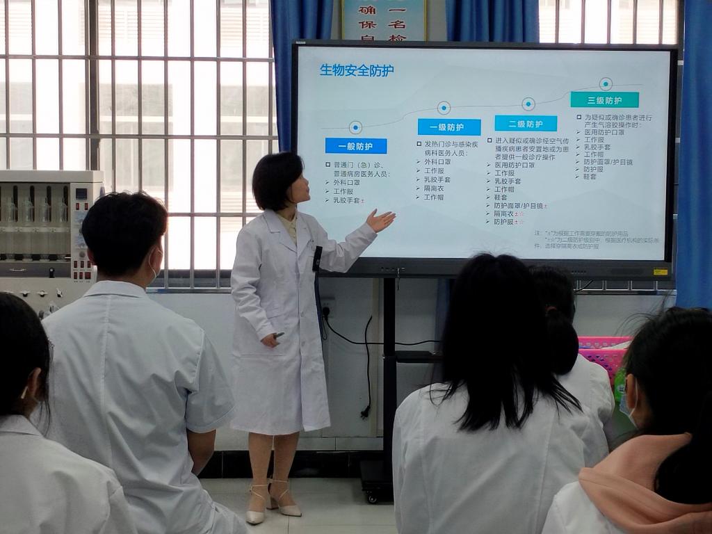 为了提高实验室工作人员的安全意识和个人安全防护能力,yl6776永利集团实验实训中心邀请临床检验教研室曹琳主任、谢诗雅老师和宋镜南老师于5月3日下午在7204实验室开展实验室《个人安全防护设备》讲座,实验实训中心全体教师及求实社学生参加了此次培训学习。