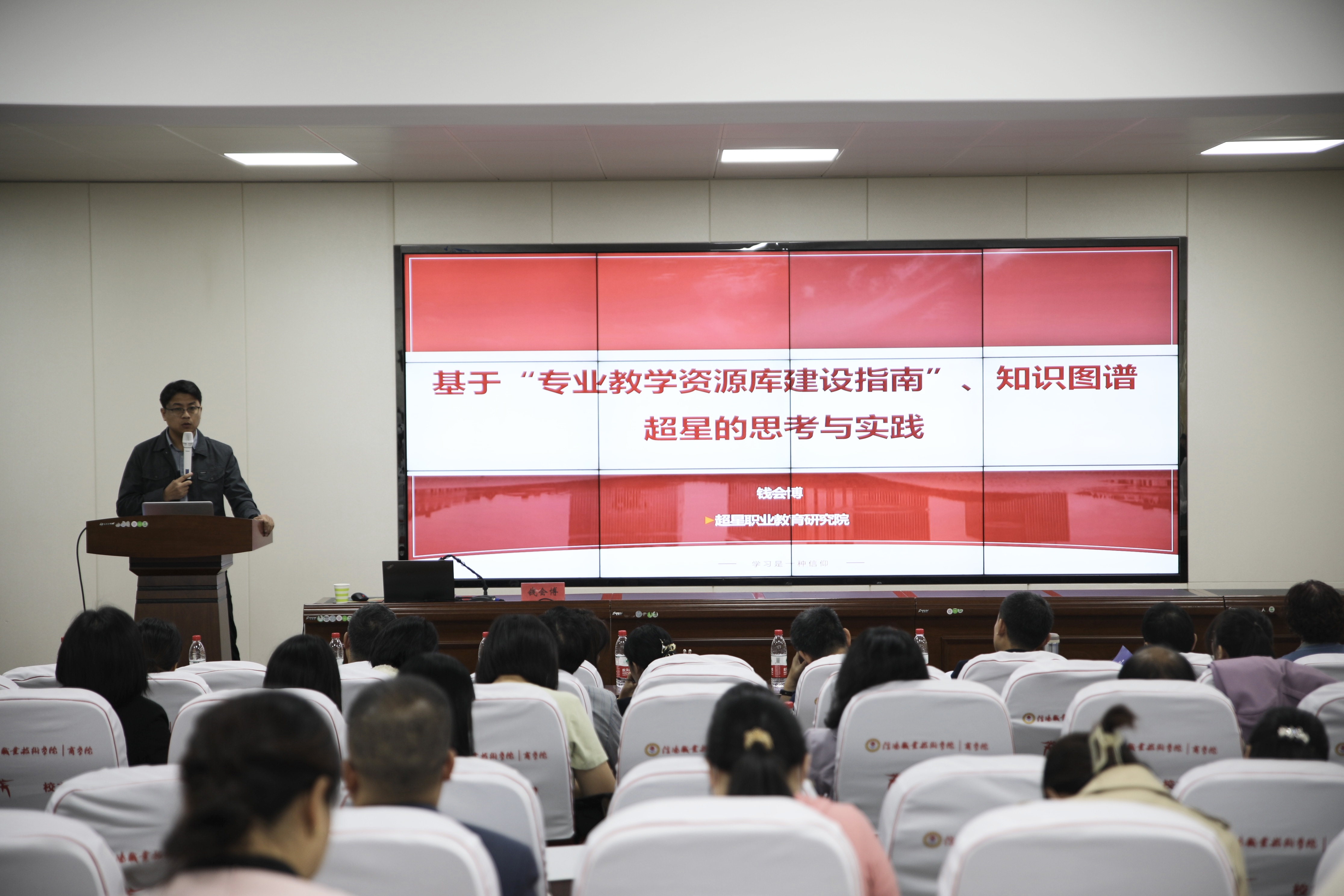 超星职业教育研究院钱会博副院长开展了基于“专业教学资源库建设”的实践与思考的报告,从专业建设、课程建设、资源库应用推广,平台软件开发和升级等方面进行了详细的分析和建议。